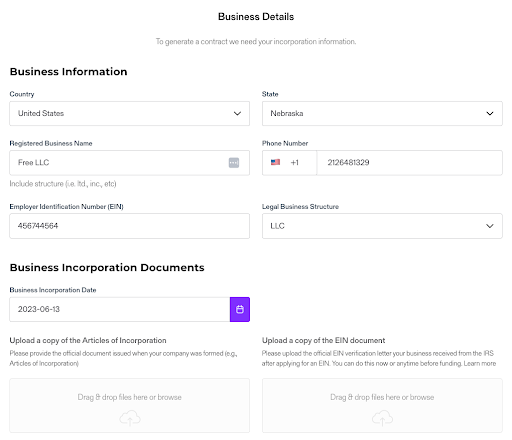 Clicking this tile will open a screen that will prompt you to fill out your business details.